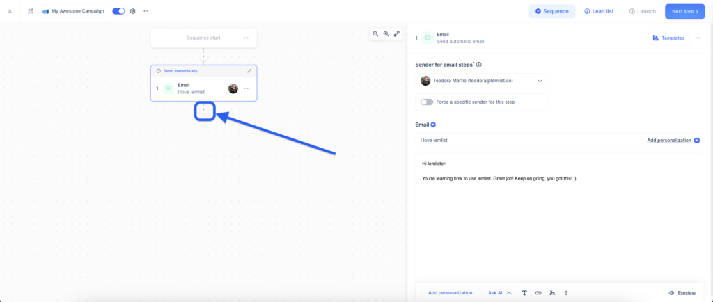 lemlist will start sending according to your schedule, following its algorithms to protect your domain health and maximize deliverability.