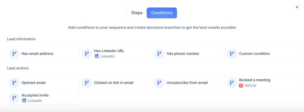 The “Wait until” condition makes lemlist wait indefinitely until the condition is fulfilled. If the condition is never met, the lead will not proceed to the next step.