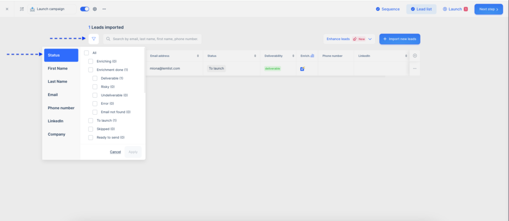 Mastering lead statuses helps you manage and monitor leads more effectively. This improves your communication and boosts campaign performance. Each status tracks the lead journey, from data enrichment to marking them as interested or unsubscribed.