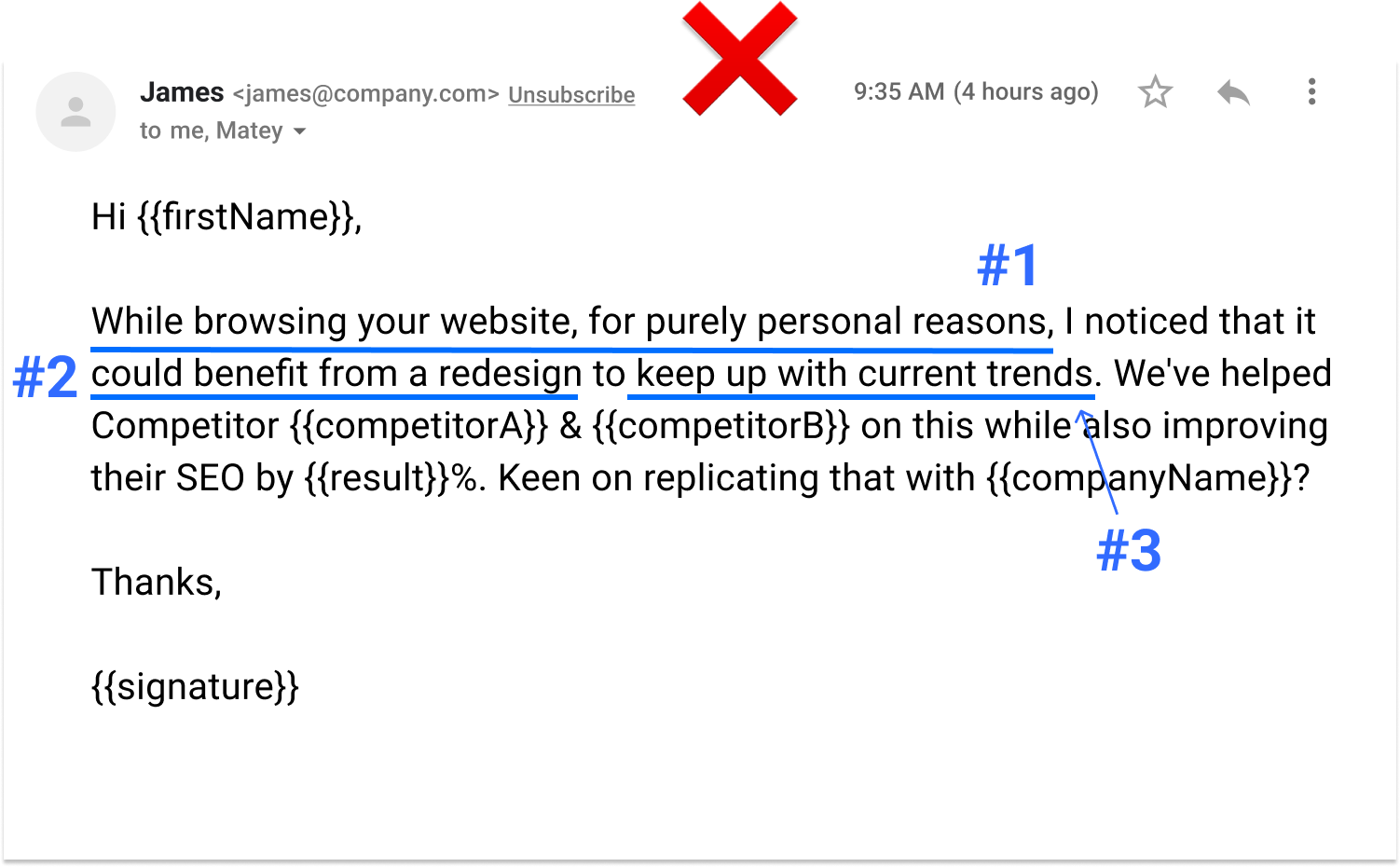 Here’s what stops prospects from replying to this cold email: