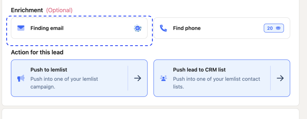 If you’re importing leads through the lemlist Chrome extension or with their LinkedIn URL, lemlist will scrape and collect key details like first name, last name, and company domain.