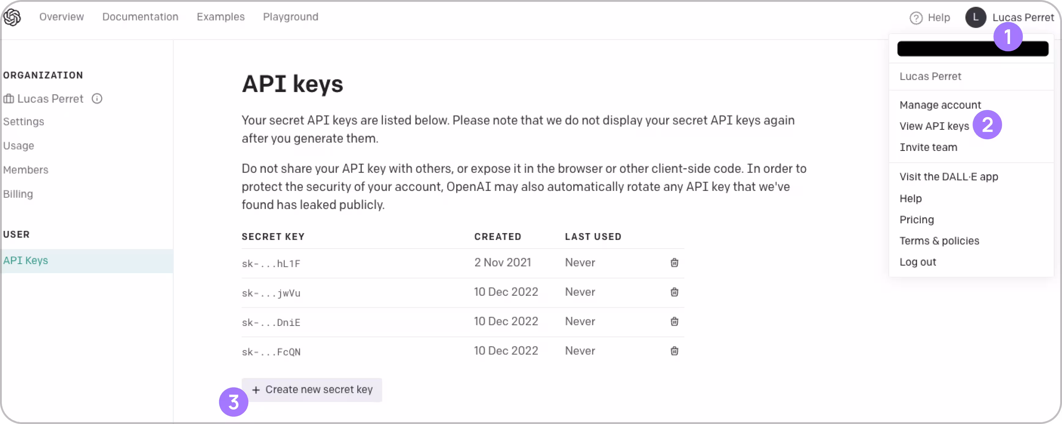 - click on view API Keys