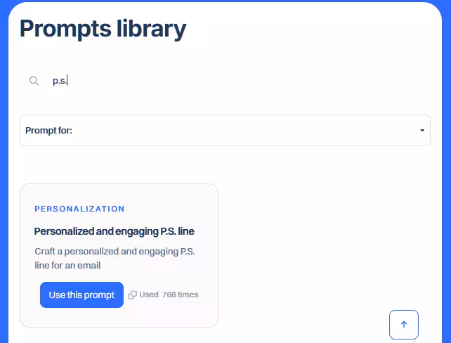 Then, search for P.S. in the Prompts Library and use the Personalized and engaging P.S. line prompt.