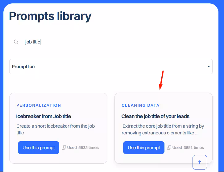 With AI Variables, you use one prompt on all your leads, and you’re done. You don’t even have to write the prompt yourself because it’s already there in lemlist’s Prompts Library.