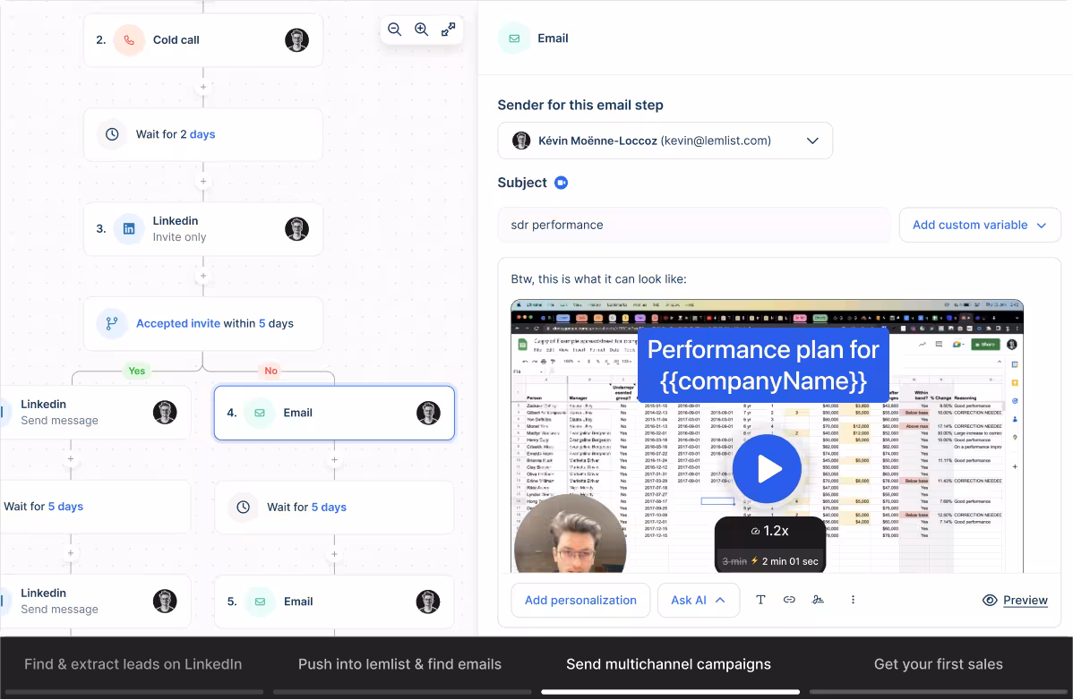 You can set up easily editable email sequences, allowing you to quickly build personalized campaigns that align with your goals. Lemlist’s advanced conditions let you configure automations that trigger reactions based on your recipient’s actions.