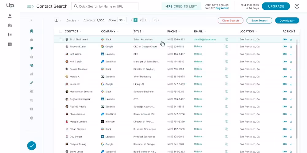 UpLead supports integration with popular CRM platforms such as Zapiers, Salesforce, Copper, or HubSpot.
