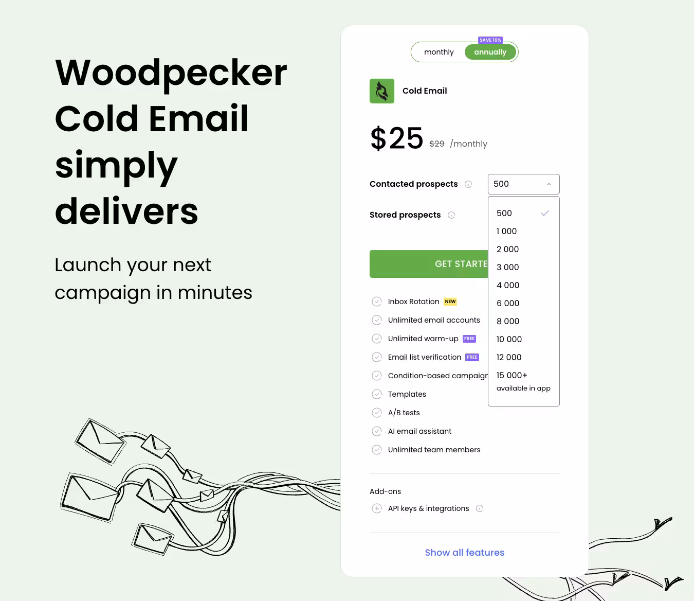 Woodpecker offers a range of plans starting at $29/month. However, costs can build up as you engage with more prospects. To help you decide, Woodpecker provides a 7-day free trial or until you reach out to 50 prospects, whichever comes first.