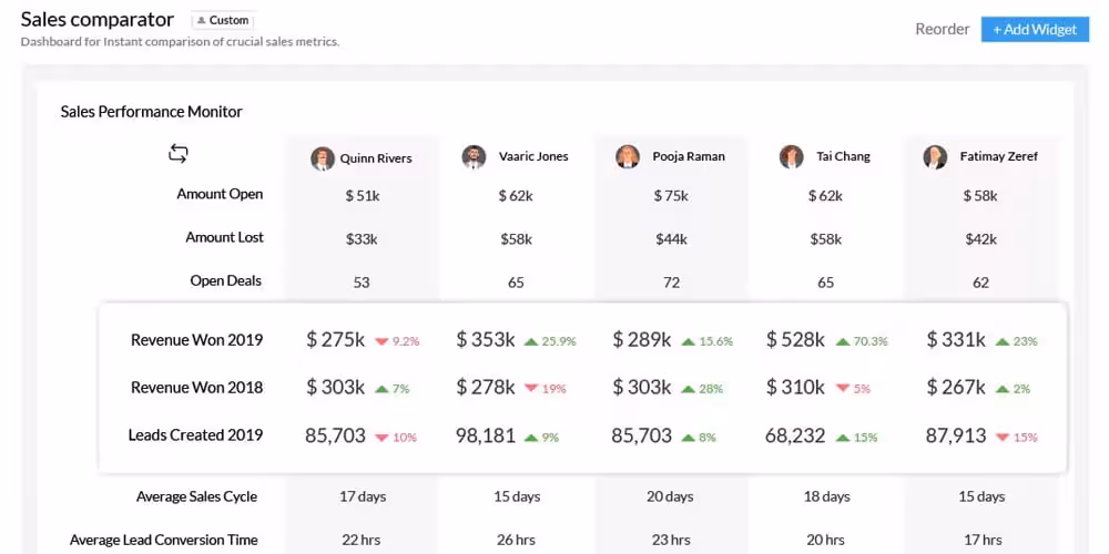 Zoho helps you analyze and visualize your data. With its filtering options, you can find the data your strategy needs to improve. You can also create bar graphs, heat maps, or pie charts to visualize collected data.