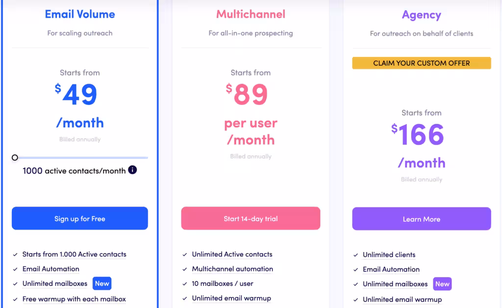 - The pricing is slightly more expensive than the other cold email software.
