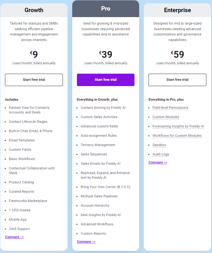 Although the Essentials plan is pretty solid, CRM integrations are included in the Business and Enterprise plans.
