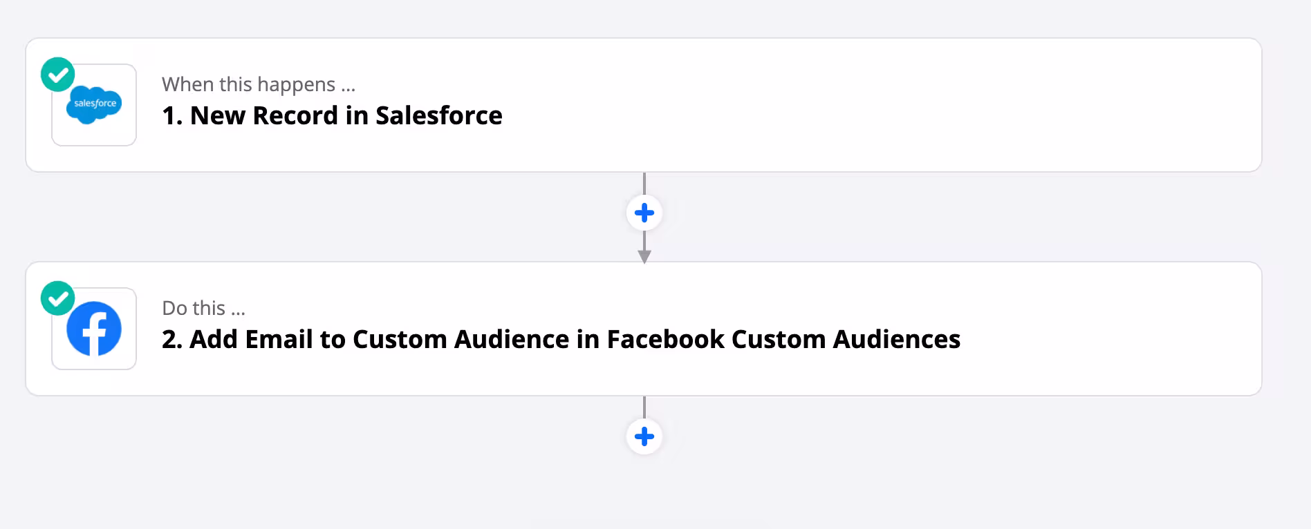 We’ll use Zapier in order to connect FB and SF, but you can use other tools as well, that’s just an example.