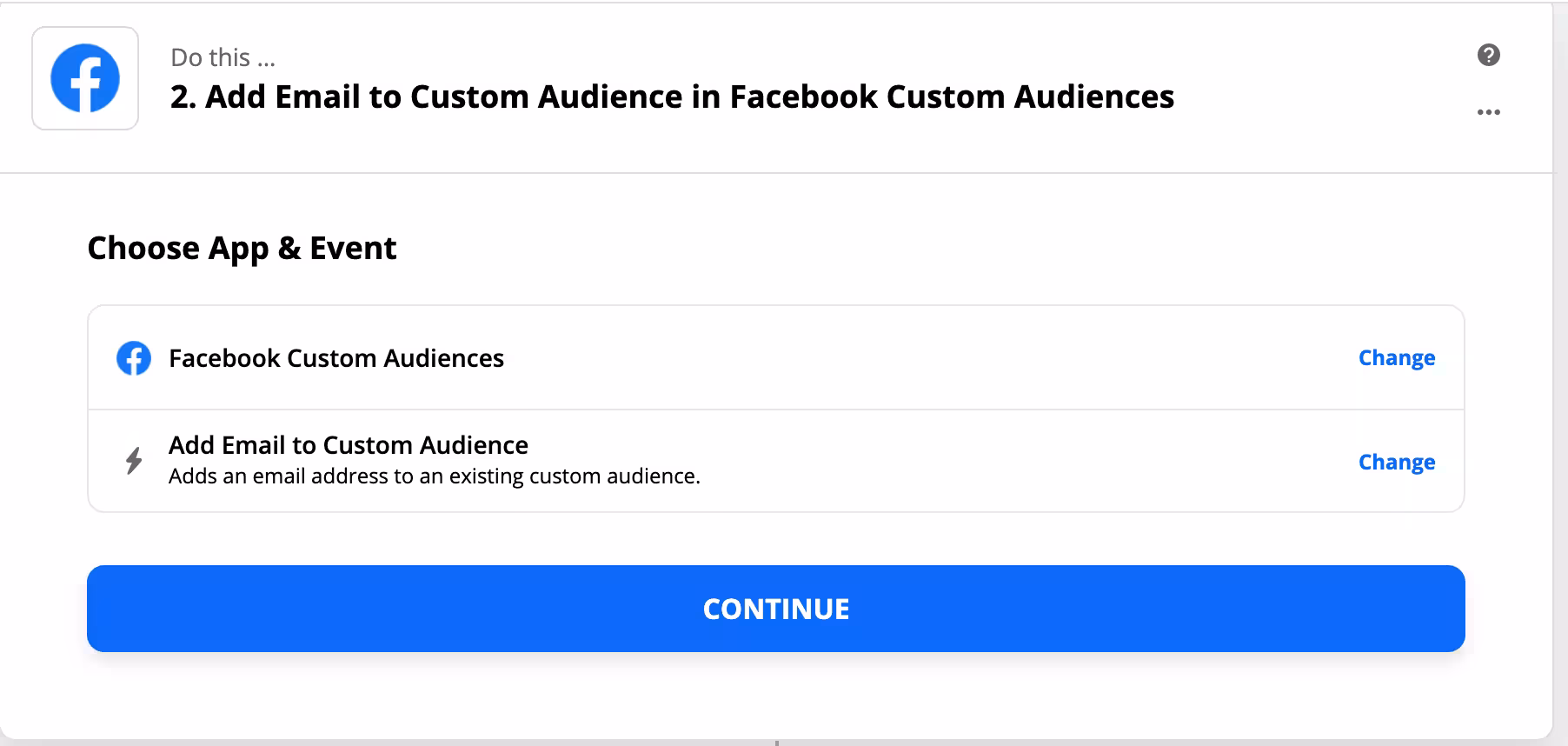 Then pick FB Custom Audience to add new contacts to your existing FB ad campaigns.
