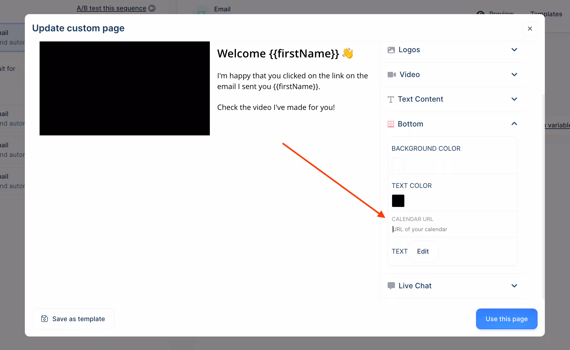 Add your calendar below the text and video. For instance, put your Calendly in settings on the right side.