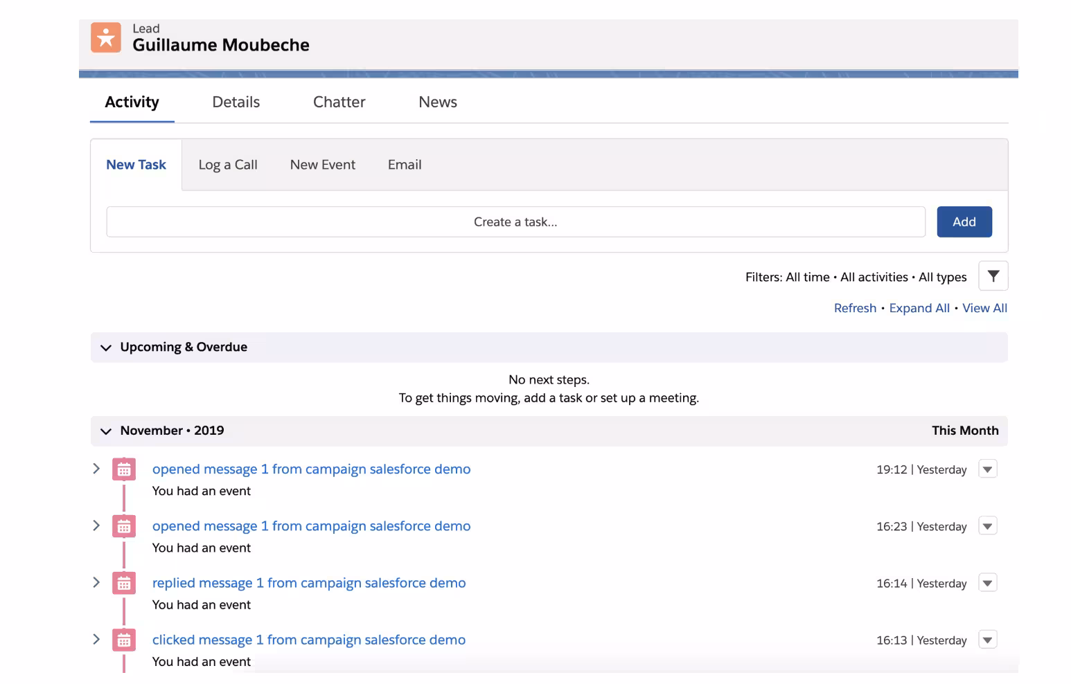 Bonus! You can also see directly in Salesforce: who opened and engaged with your emails that were sent with lemlist.