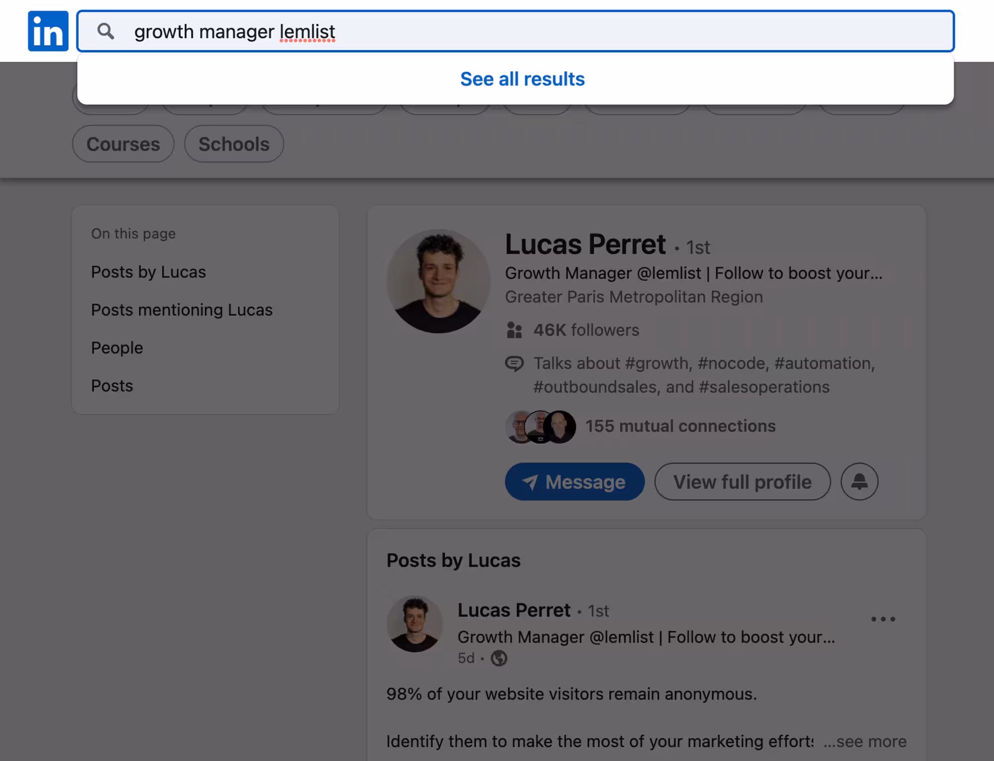 [ ] Verify all your prospect’s emails before sending your campaign(s) – no matter where you found the emails (bought a list, from a website, from a tool, or from LinkedIn). You can use tools like lemlist’s Email Finder and Verifier.