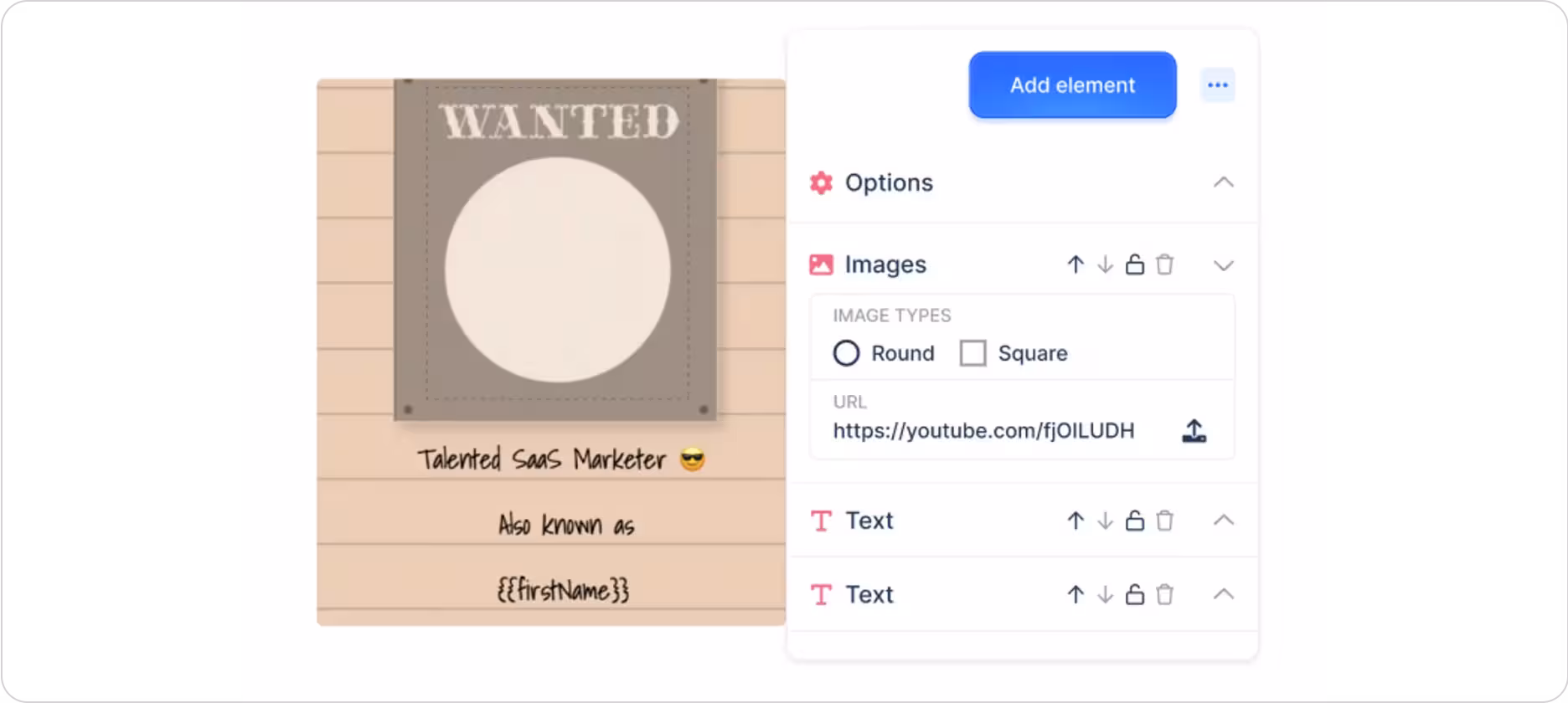Stand out with personalized images by automatically adding your leads’ names, logos, website screenshots, etc.