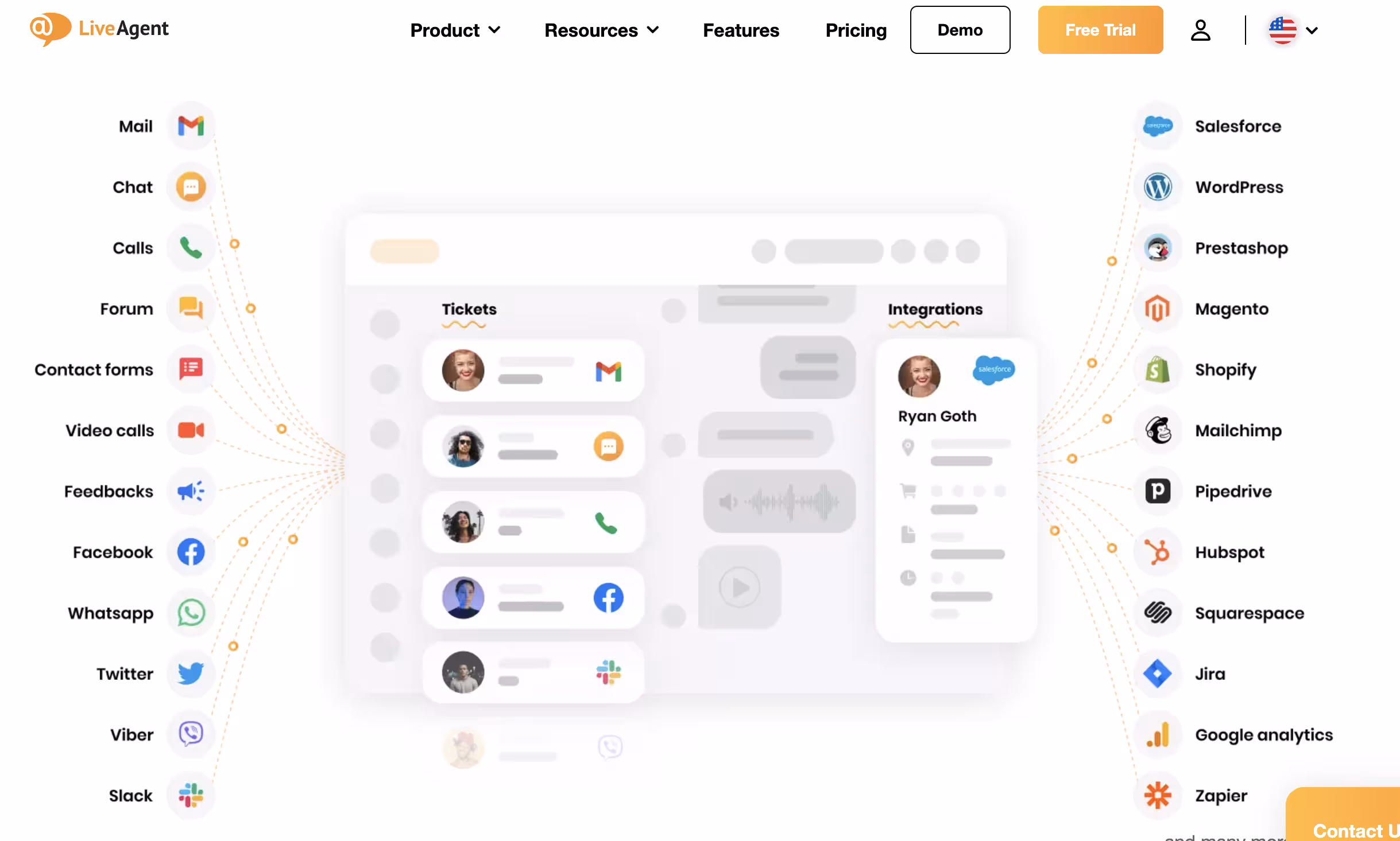 - Over 300 integrations including with RingEX, Salesforce, Dynamics, Zendesk, ServiceNow, Oracle, Kustomer, SAP, Spice CRM, and so on.
