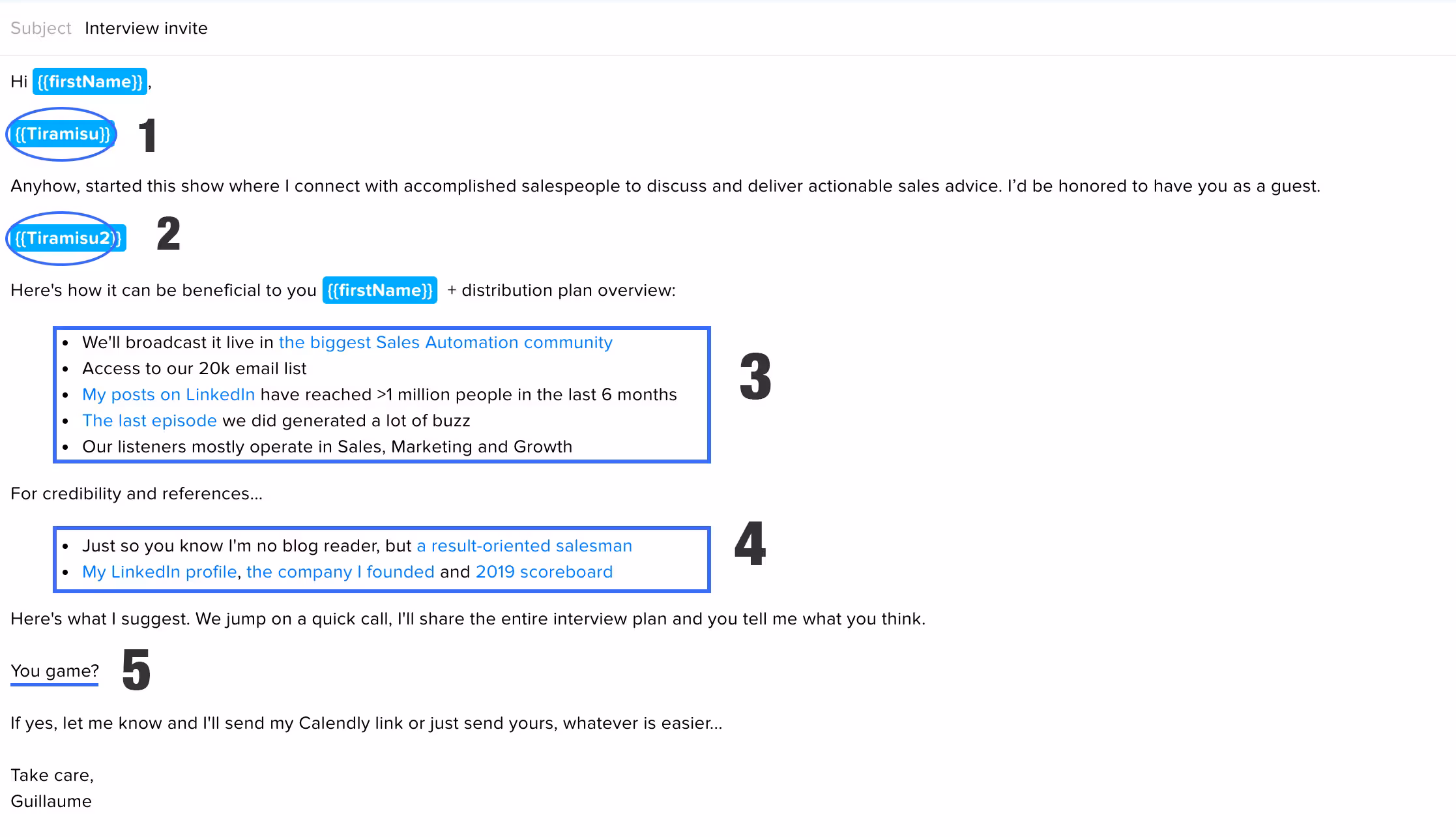 The Tiramisu strategy consists of writing genuine intro lines and adding custom sentences that change for each prospect.