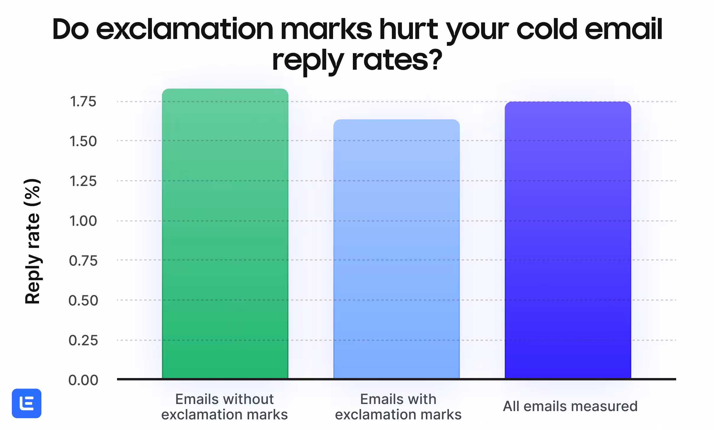 Emails without exclamation marks did get a slightly higher average reply rate than emails with exclamation marks.