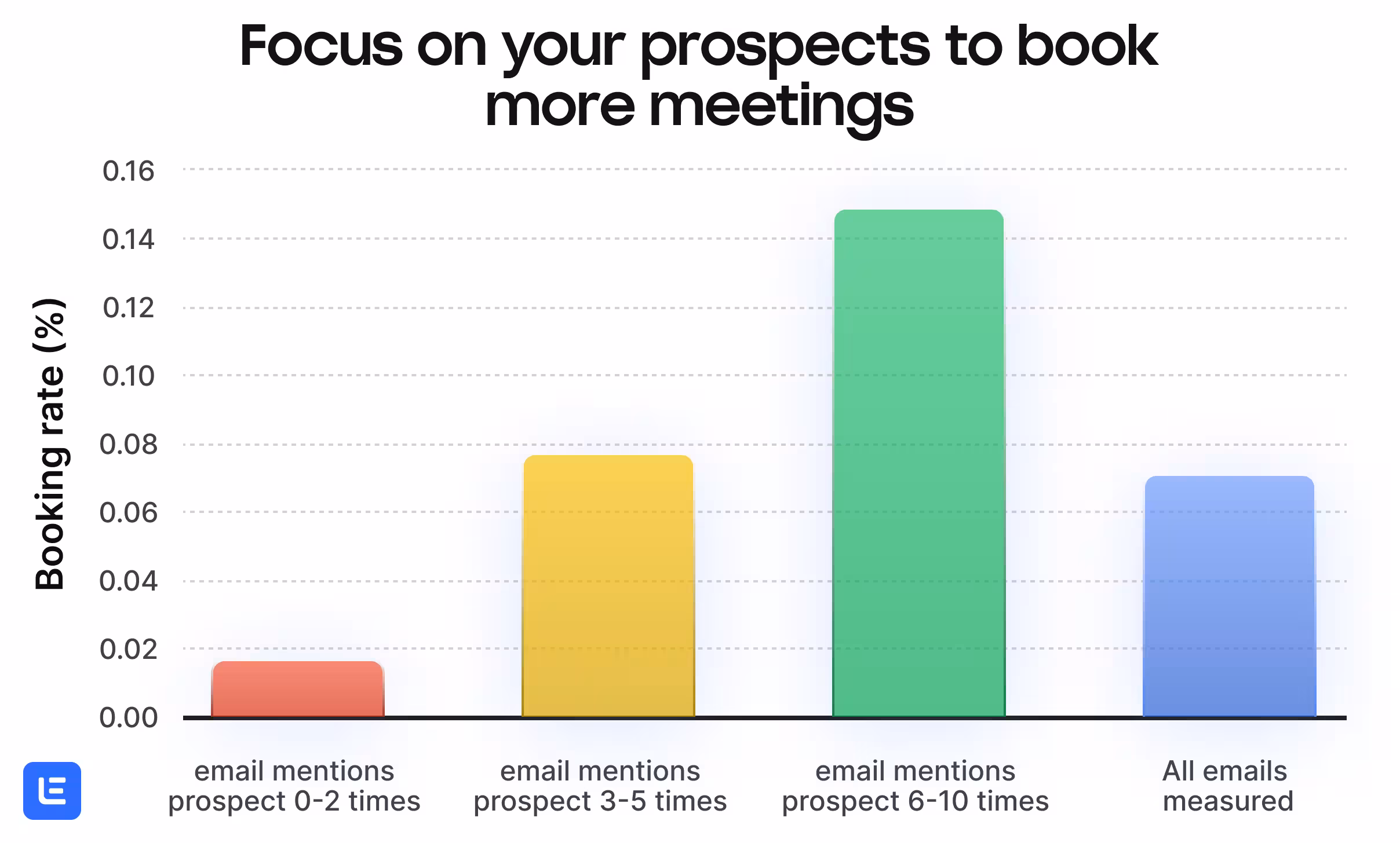 And we found that, out of millions of cold emails, the ones that most mentioned the prospect got the highest average booking rates: