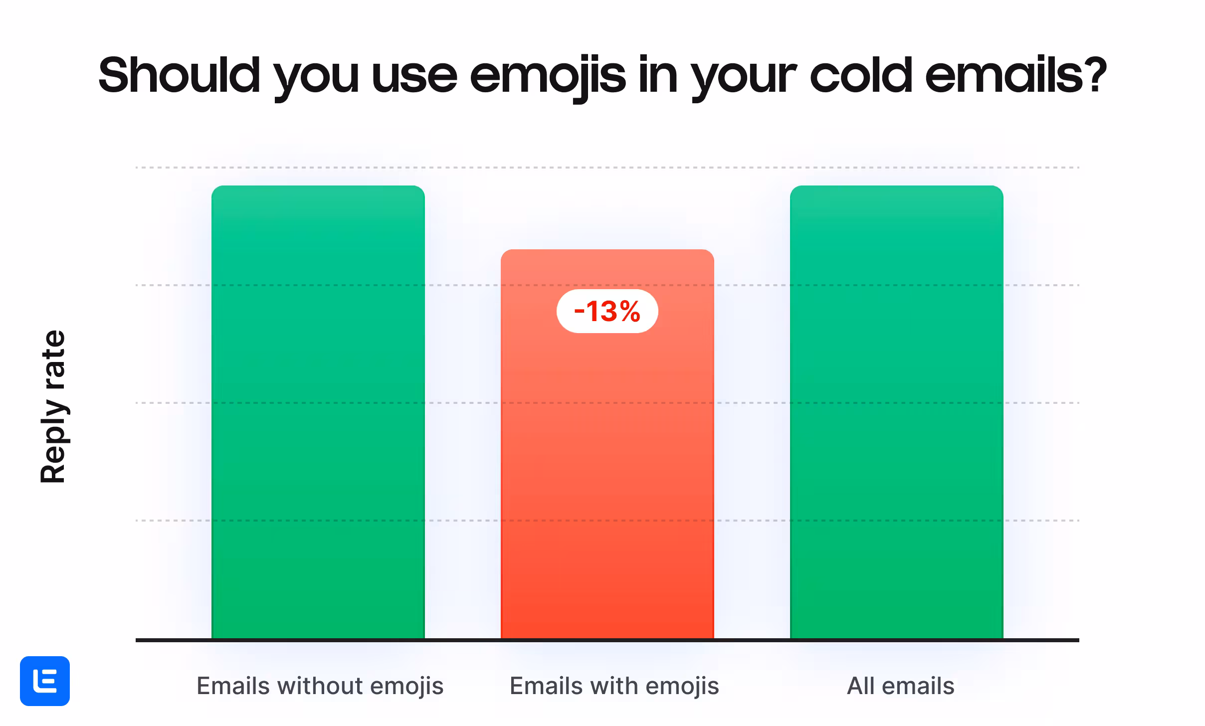When we analyzed the average reply rates of emails with and without emojis, we found that emails with emojis got an average of 13% lower reply rates.