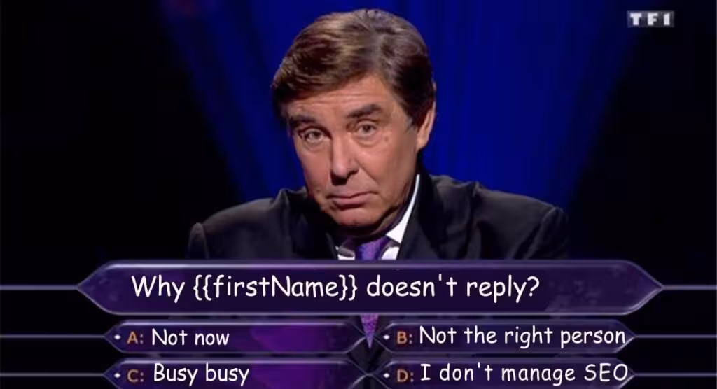 B: You’re not in charge of SEO. Could you kindly put me in touch with the person responsible for this topic? (phone a friend)