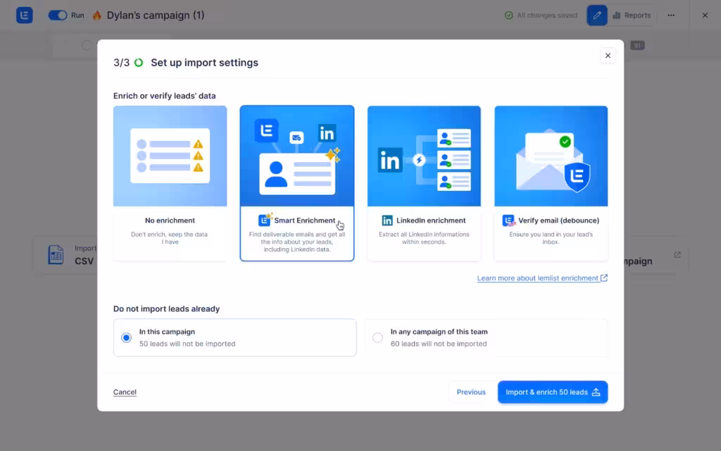 Step 2: import a list of your LinkedIn leads to your lemlist app