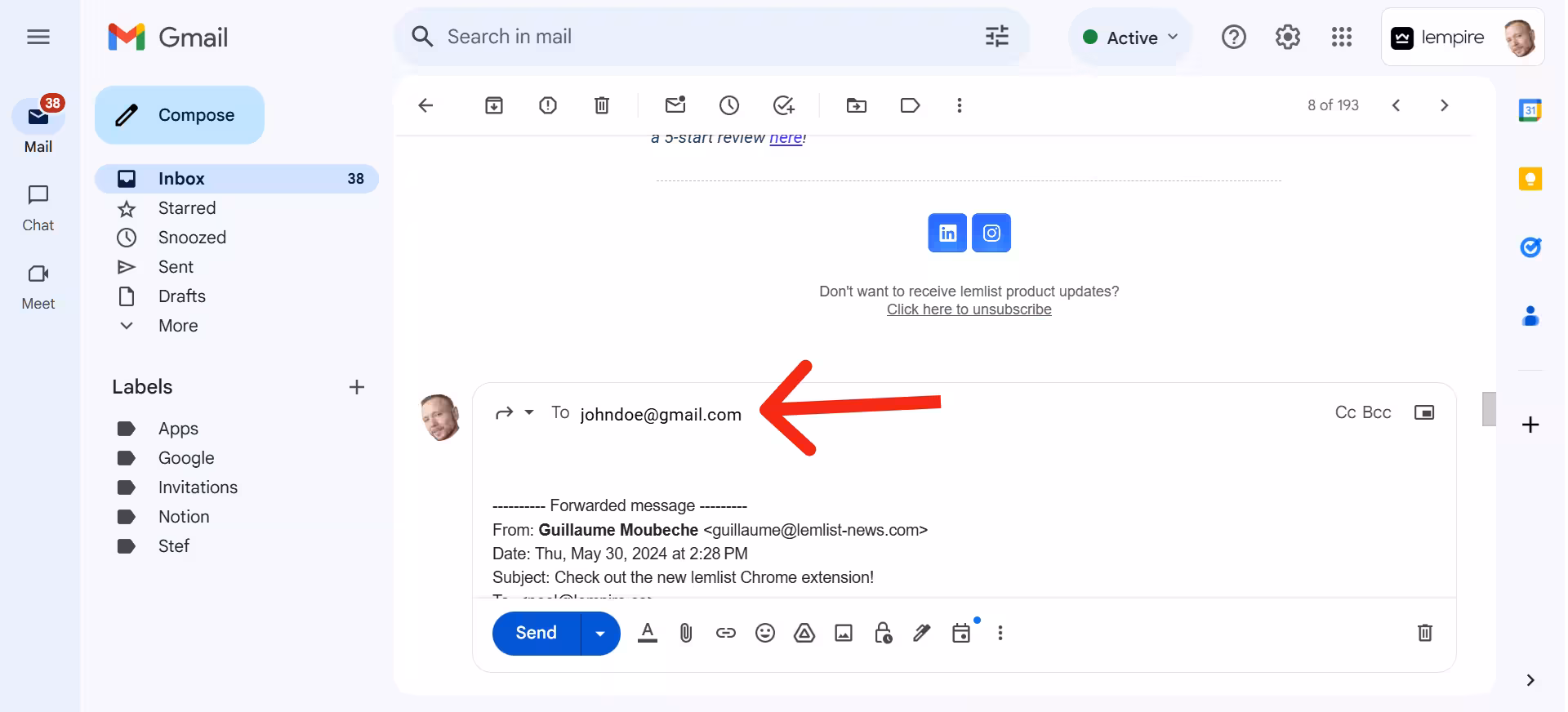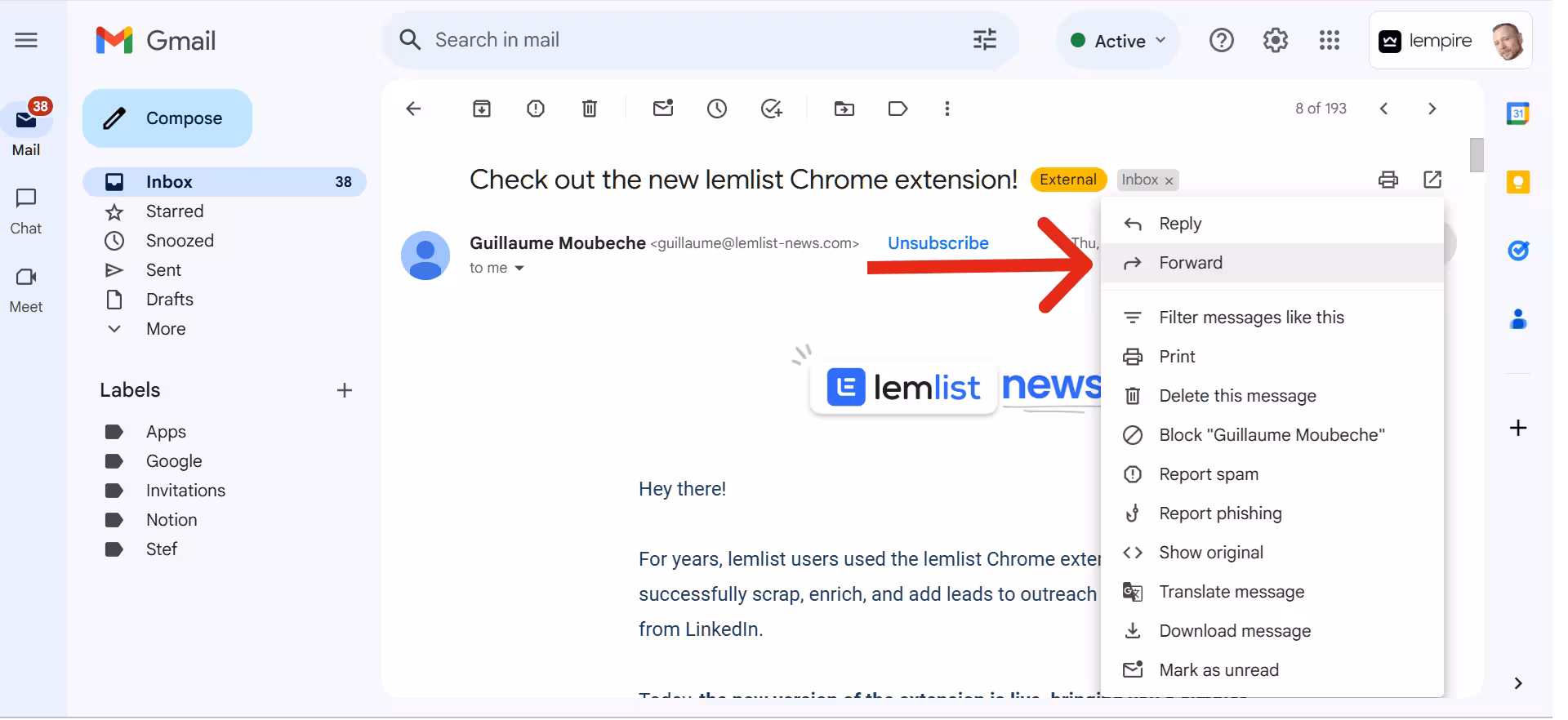 A really cool Gmail feature is that you can forward specific messages only.