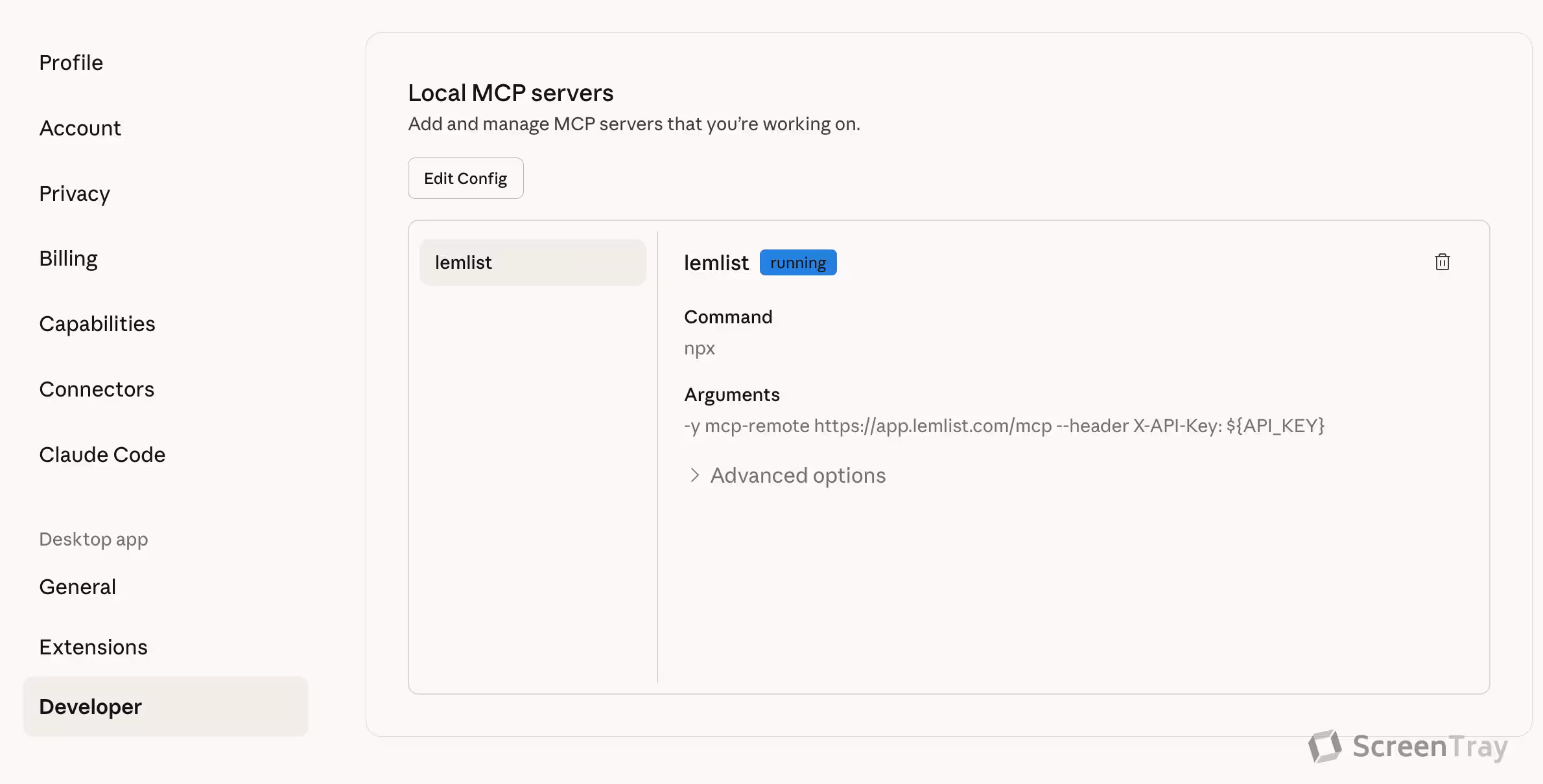 claude mcp add --transport http lemlist https://app.lemlist.com/mcp --header "X-API-Key:YOUR_API_KEY"Be careful: always keep your API key out of version control. If you’re working in a shared repo, use environment variables rather than hardcoding the key in your config file.