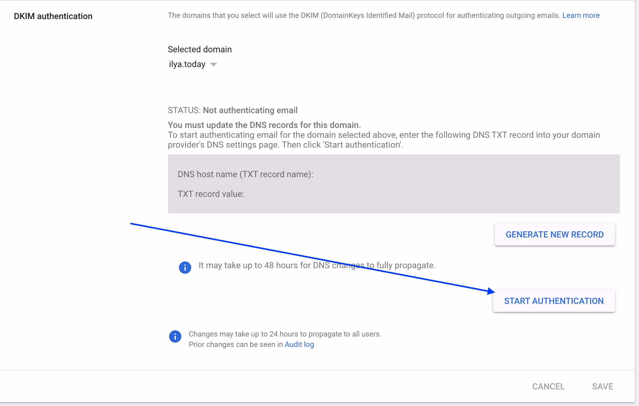 DKIM setup, depending on your domain provider, is a bit different than when you’re using Google.