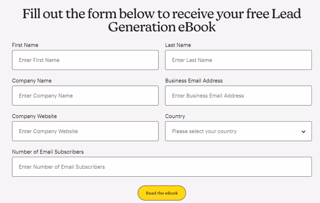 Once you start designing your lead capture form, you’ll have to decide how many fields you want to include and what information you’ll be requesting.