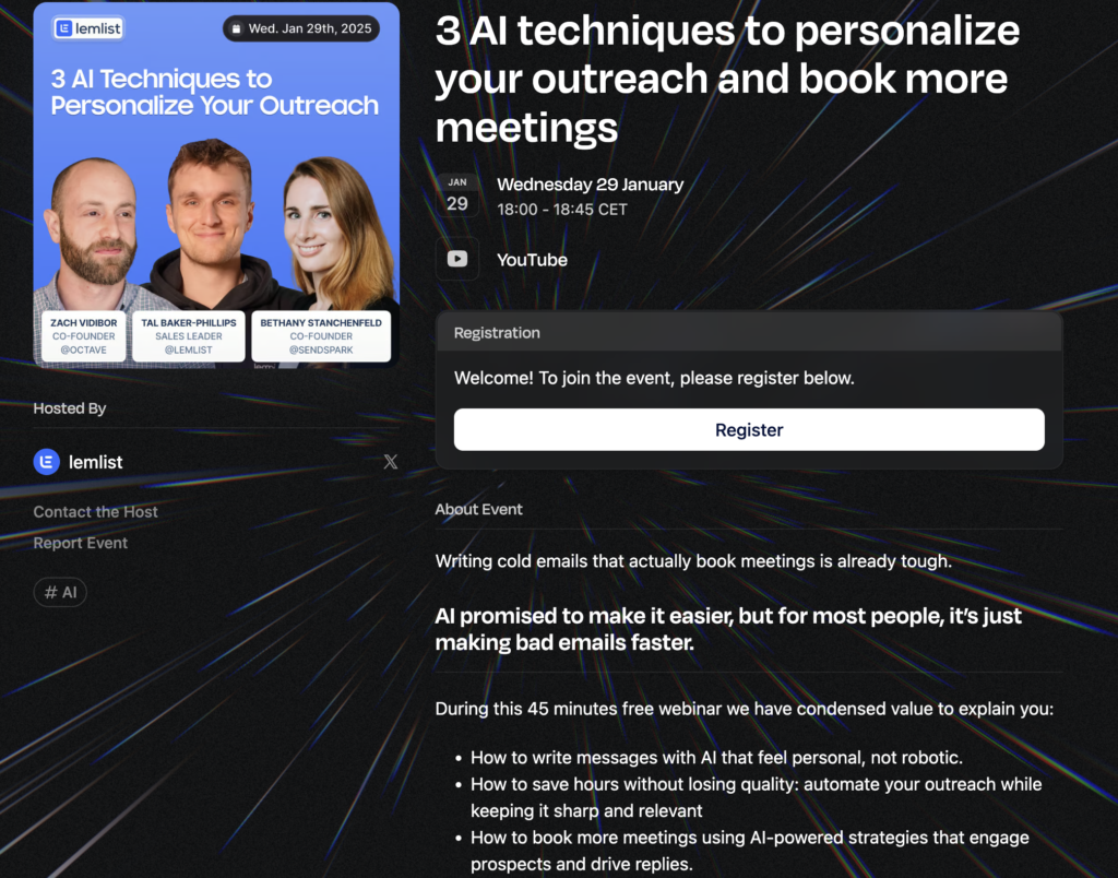 Each webinar has its lead capture page with a registration form that gives visitors a very clear overview of what the webinar will cover and what they will learn by the end of it.