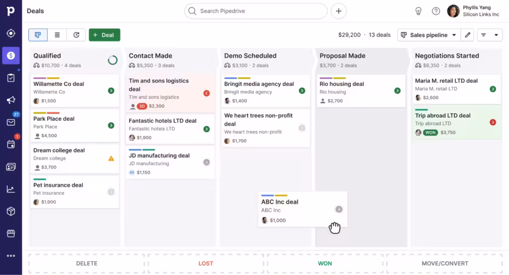 Pipedrive is built to streamline lead and deal management for sales teams by focusing your efforts on top-priority leads.