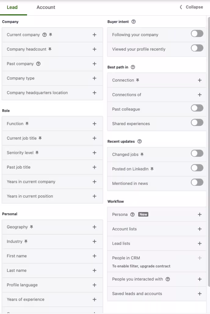 With LinkedIn, you simply have to use filters to narrow down your ICP. Bear in mind that using Sales Navigator for this purpose is much more efficient.