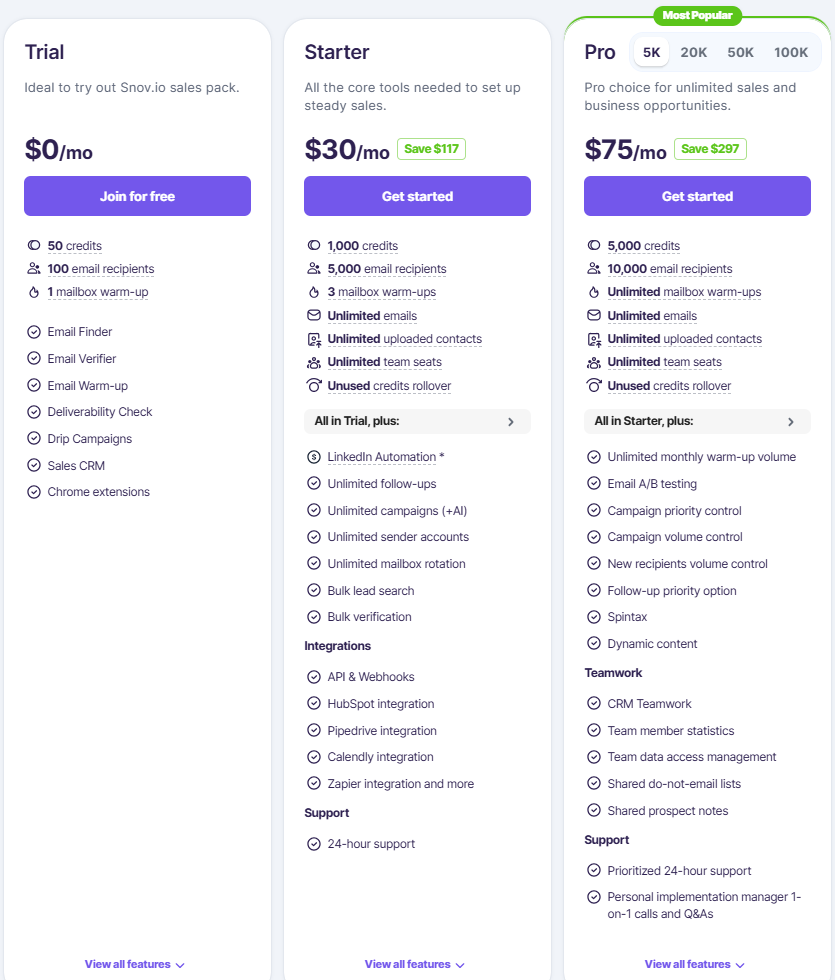 | Lead database | Advanced filters (on all plans) | Database size | Enriched and verified data | Starting price (billed yearly) |