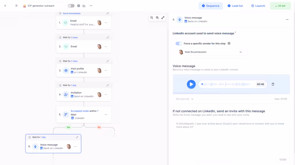 - Multichannel campaign sequences to contact leads via email, LinkedIn, phone