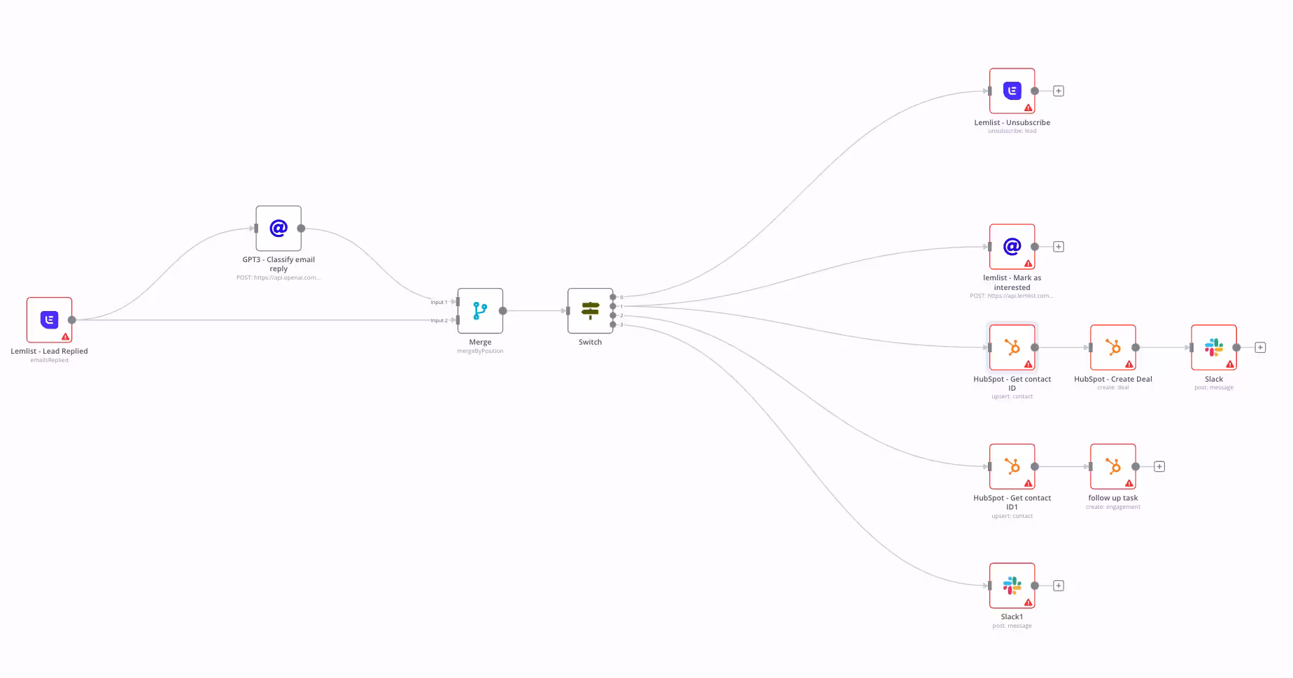 AI-based models, such as GPT-3, can help you avoid all the manual effort and give you even more accurate results. You can integrate it into your lemlist sales engagement app via n8n and make automation platforms.