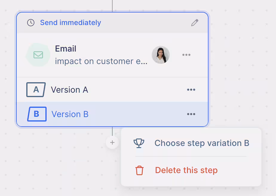 The way it works is simple. You create a sequence A and a sequence B, and lemlist automatically splits your lead list into two groups, sending them different sequences.