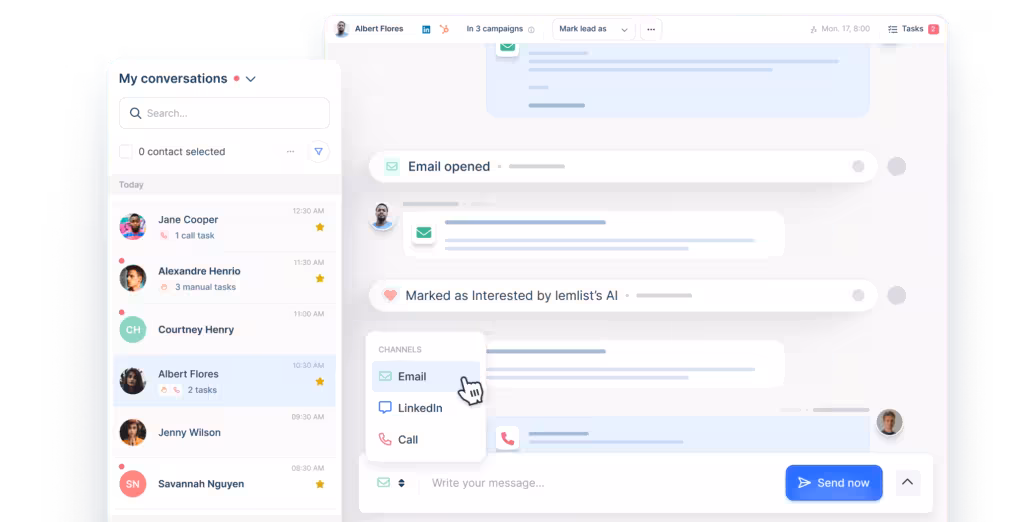 Handling many multichannel campaigns simultaneously can lead to missed or lost messages. To solve this issue, lemlist has incorporated a Unified Inbox.