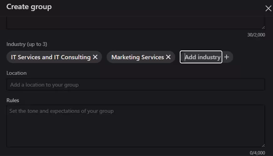 4. Add up to 3 industries. While this is optional, it helps you attract the right members.