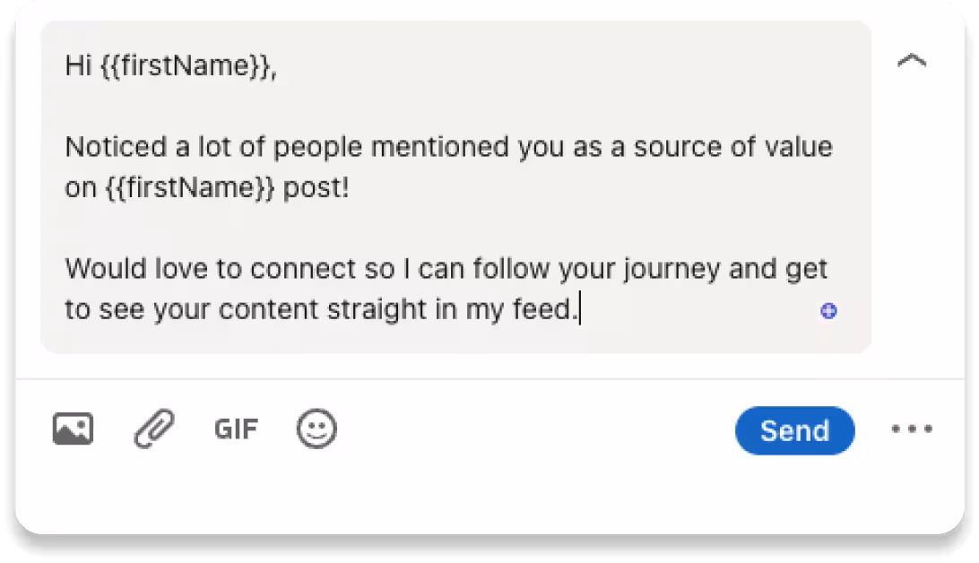 - Personalize your outreach: Ditch the generic template and add unique variables to the individual! For example, mention a connection, mutual interests, or a recent post they’ve engaged with.