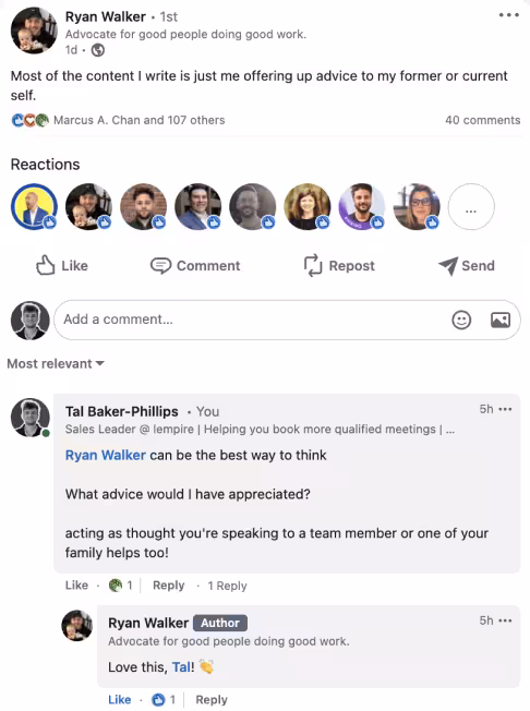 To include team members in your LinkedIn strategy, encourage them to interact with the company’s and colleagues’ posts.