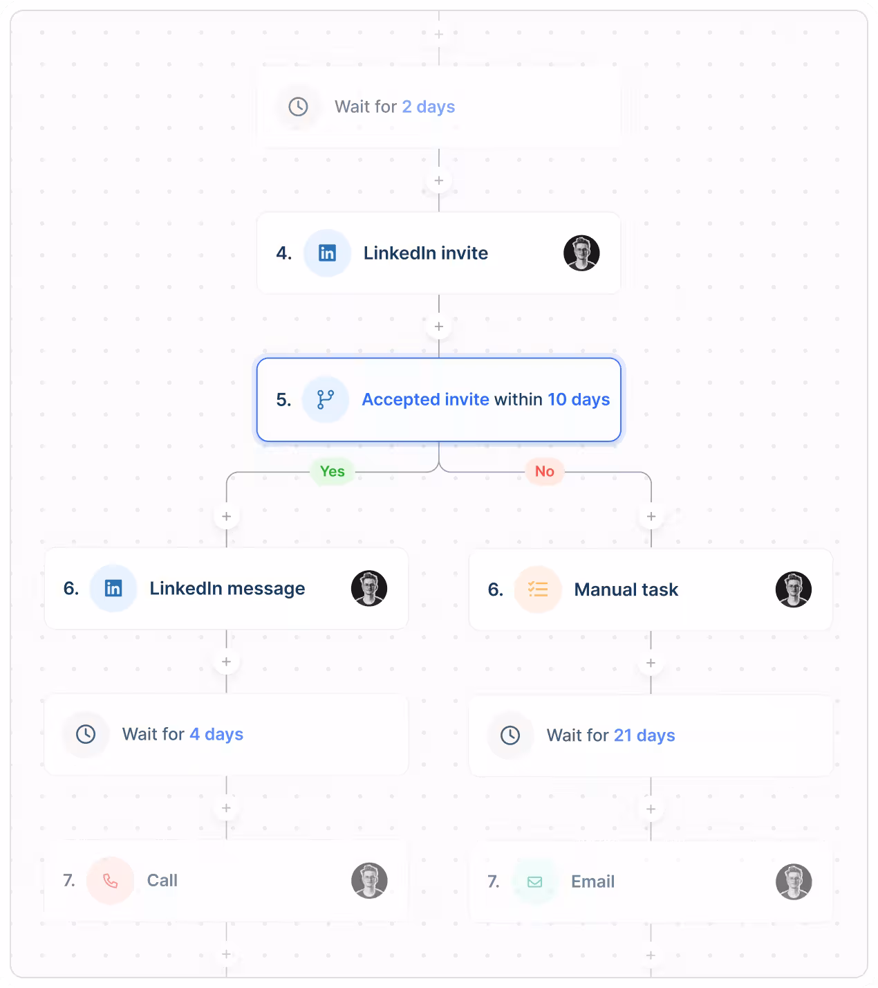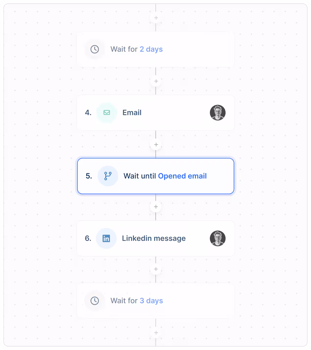 Adding advanced conditions to your outreach helps you engage with your prospects at scale, in a human way, on their preferred channel, when they are most active.
