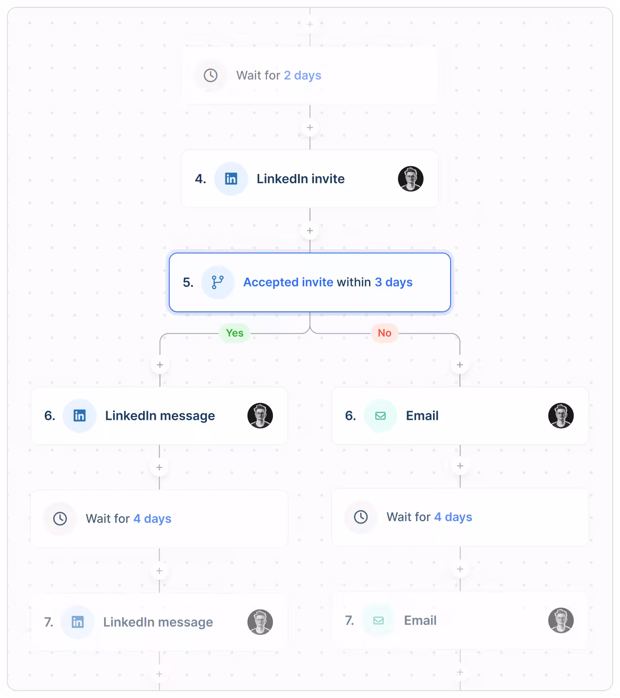 Use case #3: “If my leads accept my LinkedIn invite within 4 days, send them a LinkedIn voice message. If they don’t, send them another email.”