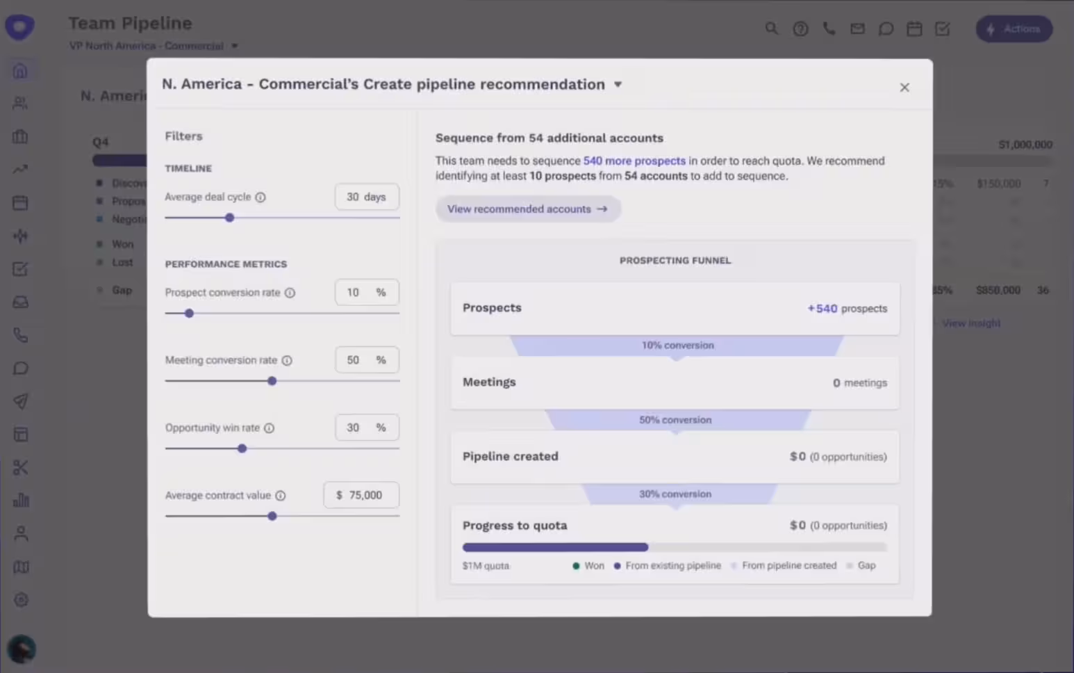 The tool analyzes past sales outreach activities and their success rates to forecast a customized pipeline activity for your sales team.