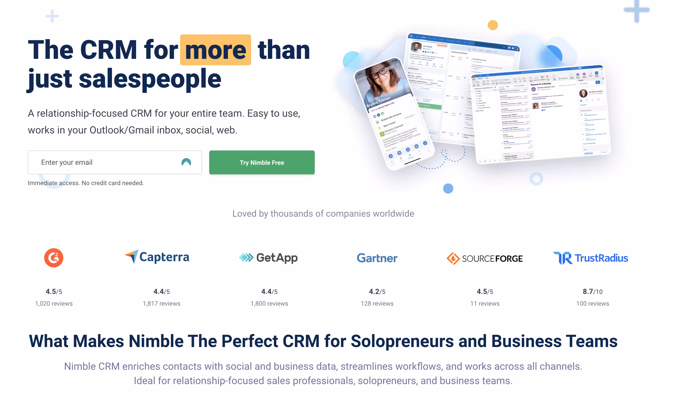 Nimble is a relationship-focused CRM for solopreneurs and business teams.