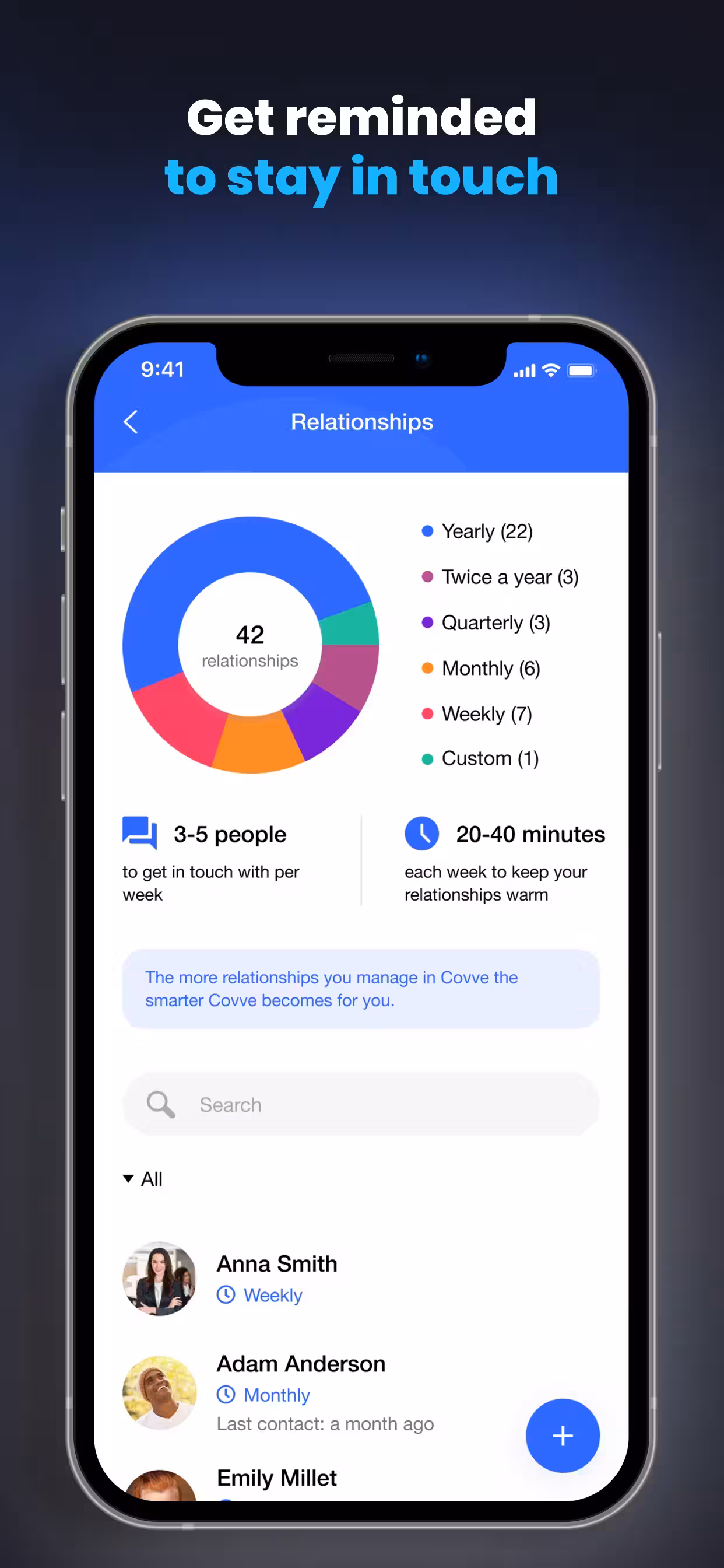 - Set smart notifications when it’s time to reach out