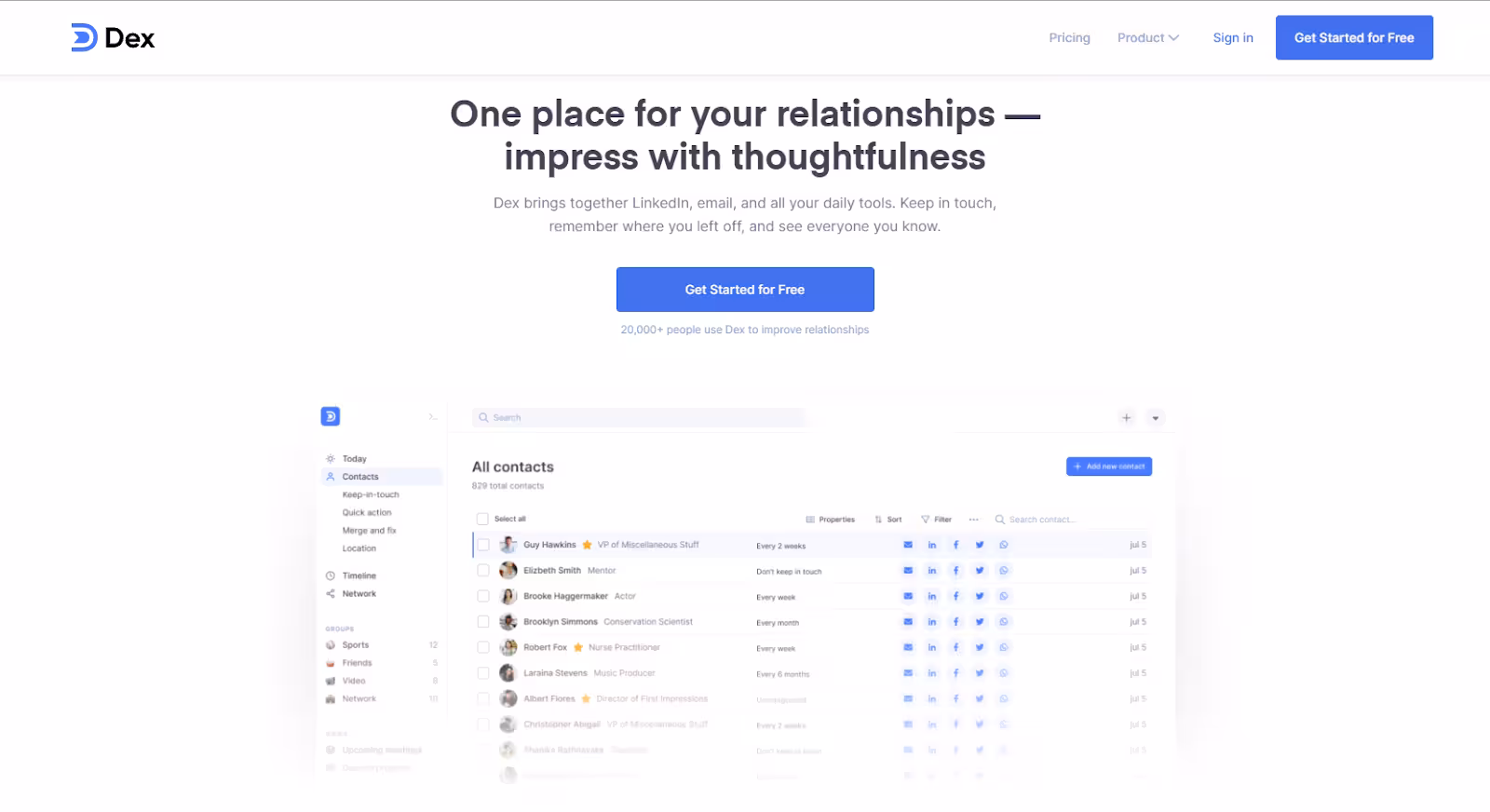 Dex is a personal CRM app that gathers contact data from your social media accounts as an extension. It focuses on building and nurturing relationships with minimal effort.