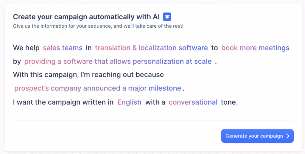 Some tools, such as lemlist, will allow you to generate an entire campaign with personalization tags using AI by simply filling in a few specifics.
