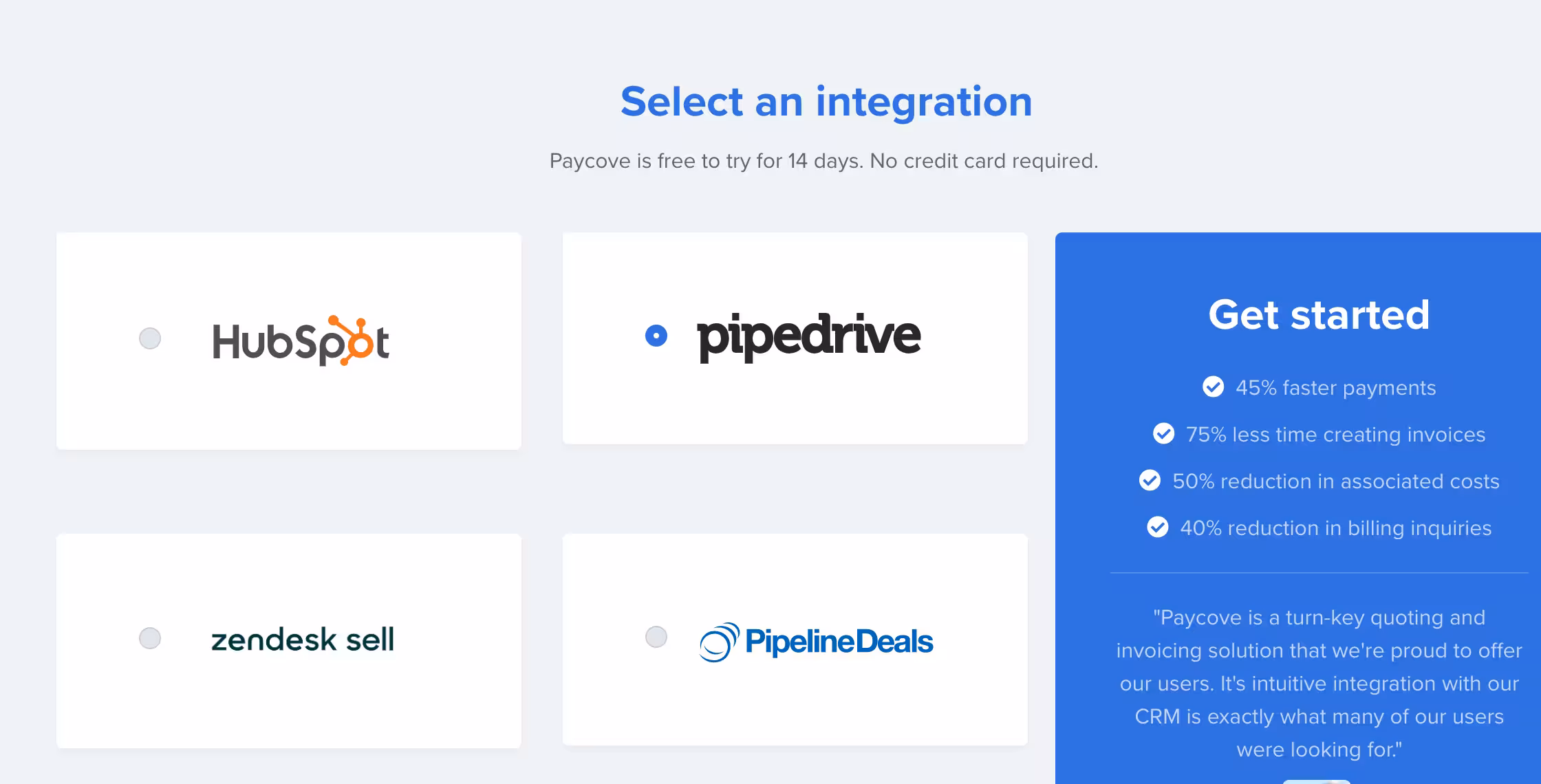 Step 1: Install Paycove and choose “Pipedrive integration”